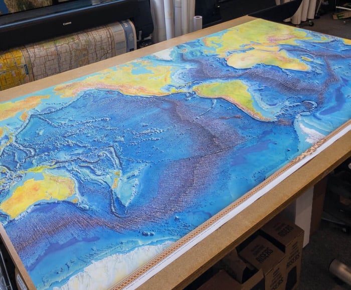 This is an attractive world wall map that just happens to be one of our finest quality world map posters in a Winkel-Tripel Projection to mitigate some of the problems other projections have with polar distortion.