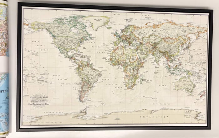 Let's be honest: part of the joy of traveling is sharing those experiences with others. But there's a big difference between pulling out your phone to scroll through photos and having a beautifully displayed map covered in pins that speaks for itself the moment someone walks into your room.